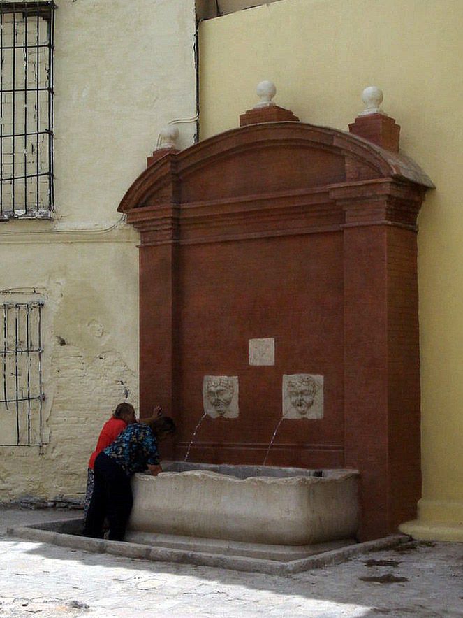 La fuente del Patrocinio, en la encrucijada de las calles Santa María Micaela y Luque con las alamedas del Patrocinio y Capuchinos.